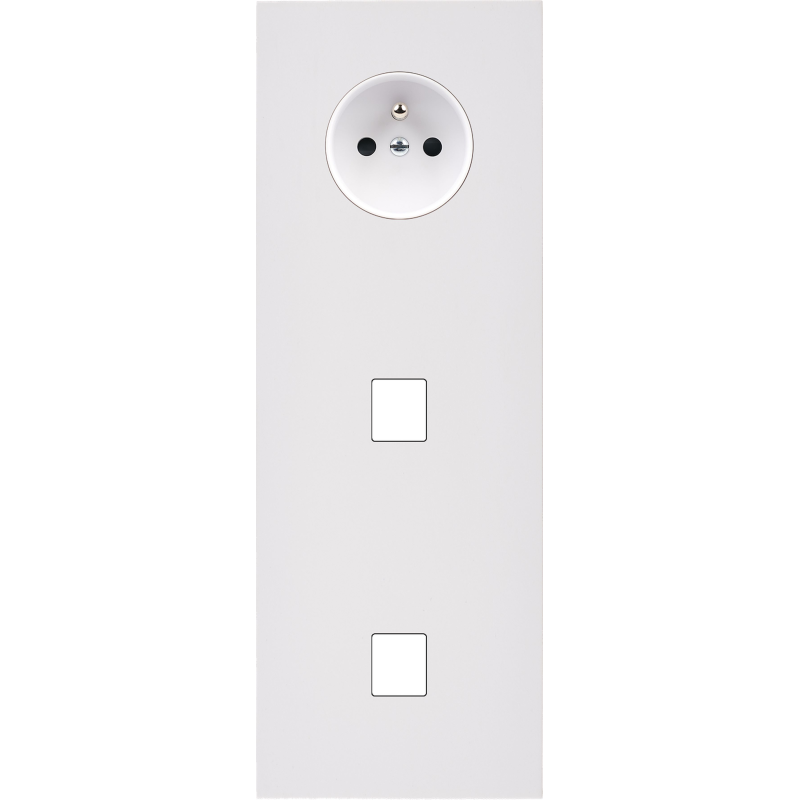 Façade M blanc mat triple vertical 2 boutons 1 prise Schuko 1 prise Schuko magnétique