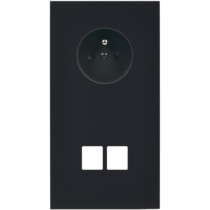 Façade M Noir mat triple vertical 2 boutons 1 prise Schuko 1 prise Schuko magnétique