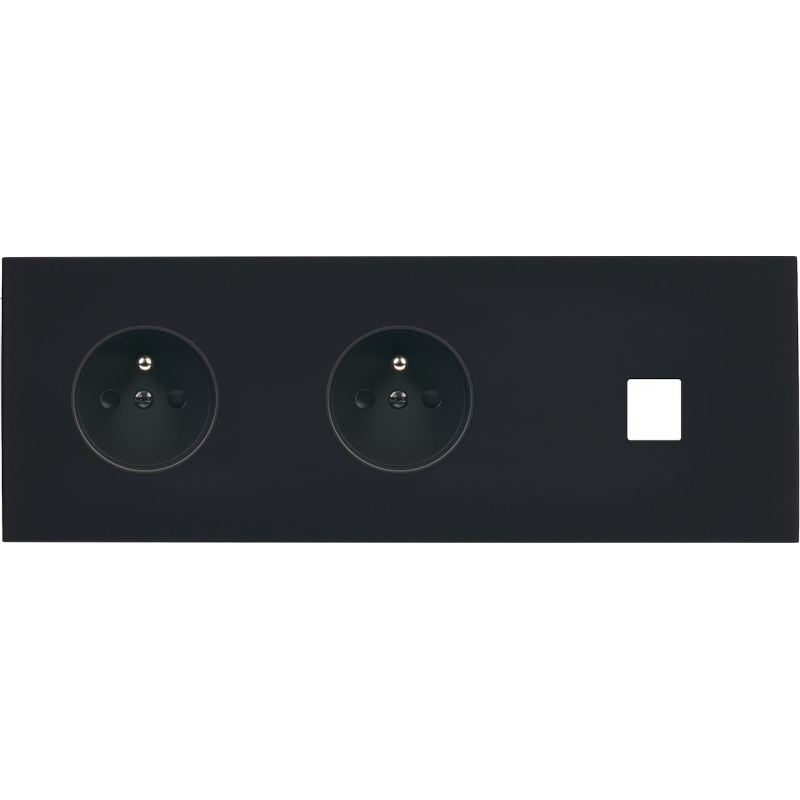 Façade M Noir mat triple vertical 2 boutons 1 prise Schuko 1 prise Schuko magnétique