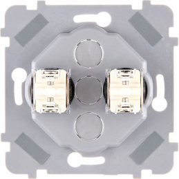 Mécanisme 2 boutons plats à LED va&vient/poussoir 'M' laiton verni façade 3 modules