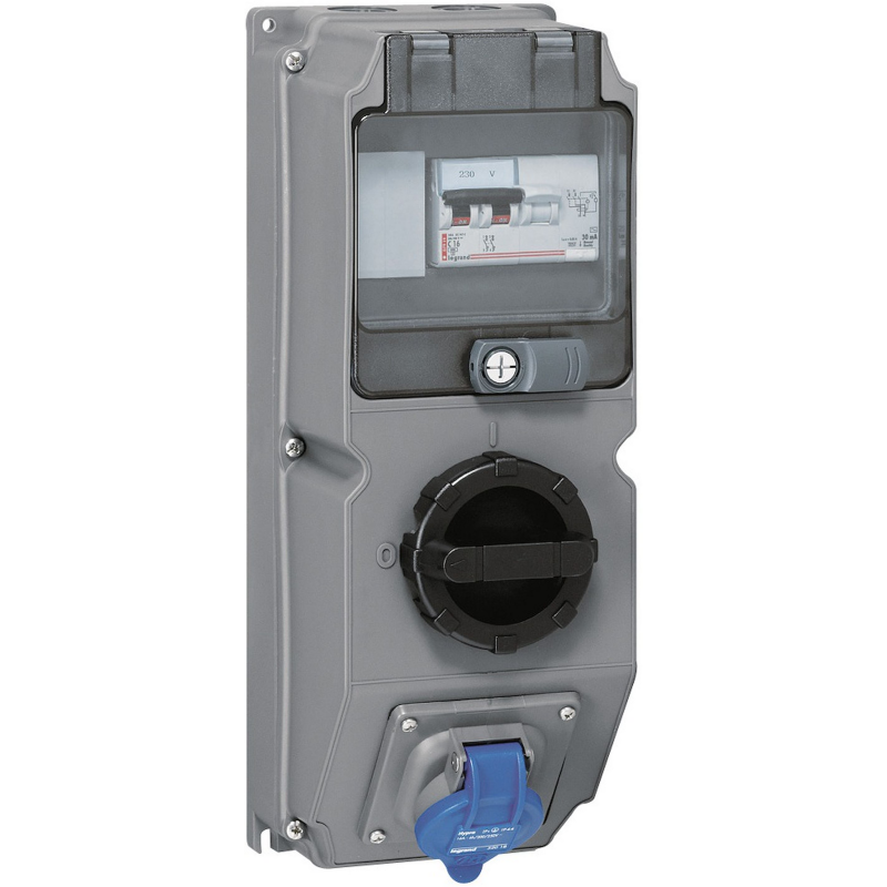 Tomada única Hypra IP66/67-55 - 1x3P+N+T 32A 380V~ a 415V~ + 1 interrutor