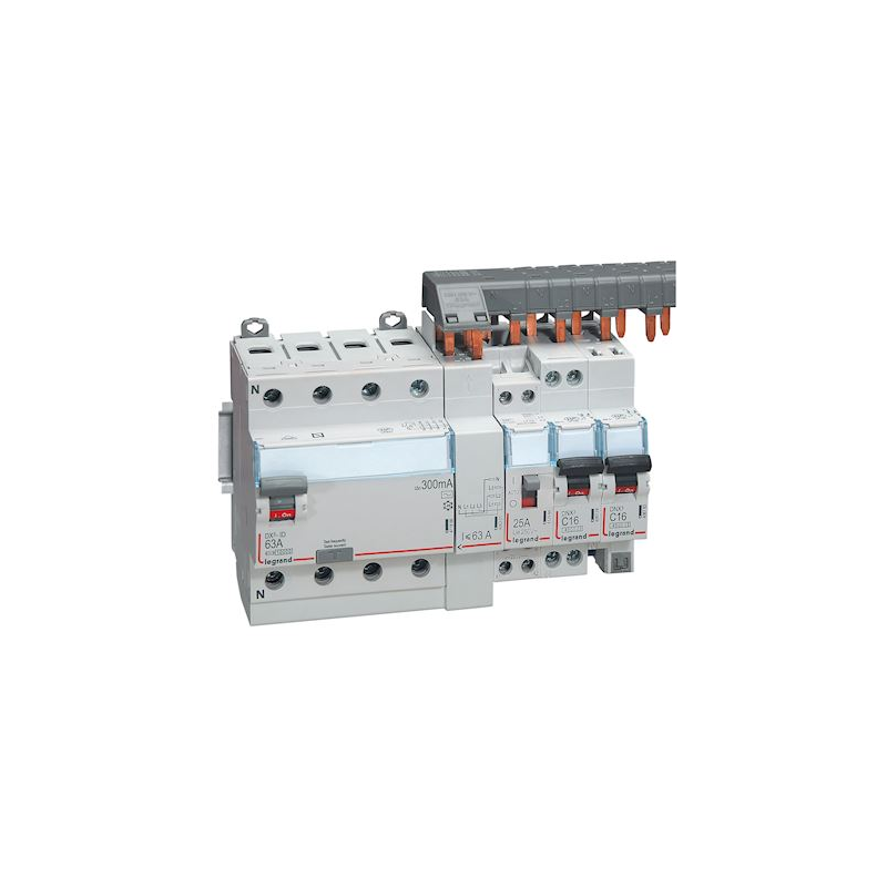 Pente monobloco XP Resi9 - 3P+N - 63A - 20 passos - cobertura de dentes de 5 módulos