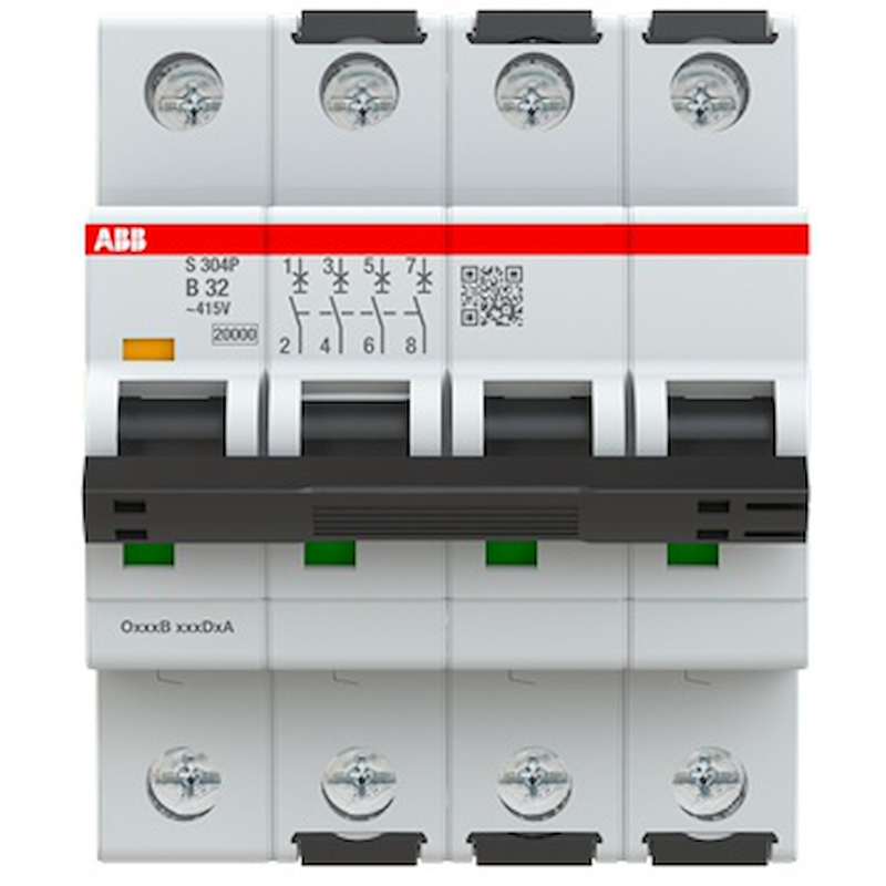 S300P-disjuntor 4P-32A-curva C-PdC 20000A-400Vac 25kA-230Vac 40kA-4 módulos
