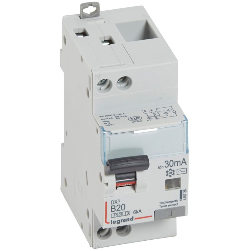 DS201 disjuntor diferencial - 1P+N - 20A - CBE D - 6000A/10kA-30mA-tipo A