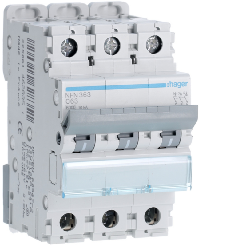 Disjuntor 3P 6-10kA curva C - 63A 3 módulos