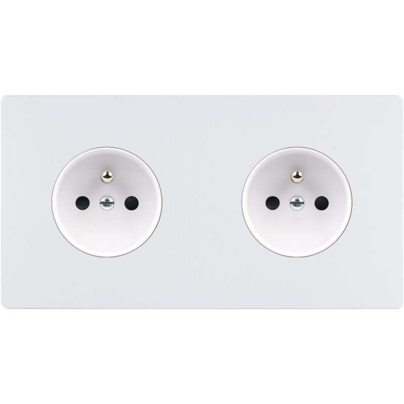 Placa de interrutor 'M' branco mate duplo horizontal 1 ficha Schuko 1 ficha Schuko magnético