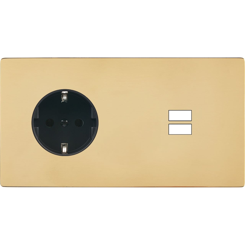 Placa de interrutor 'M' latão escovado lacado duplo ficha Schuko válvula