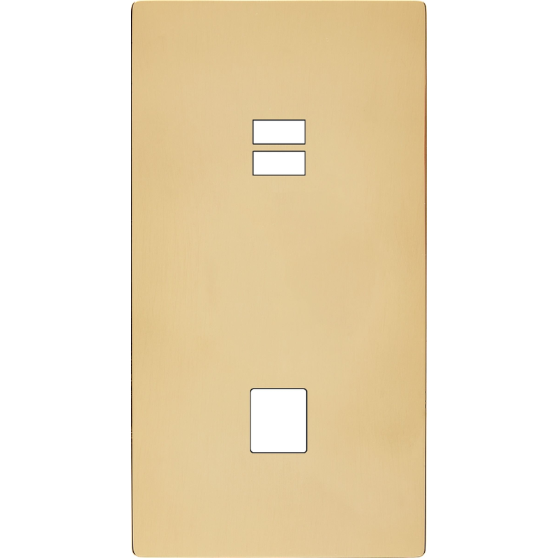 Placa de interrutor 'M' latão envernizado duplo horizontal 1 Media 1 ficha magnético