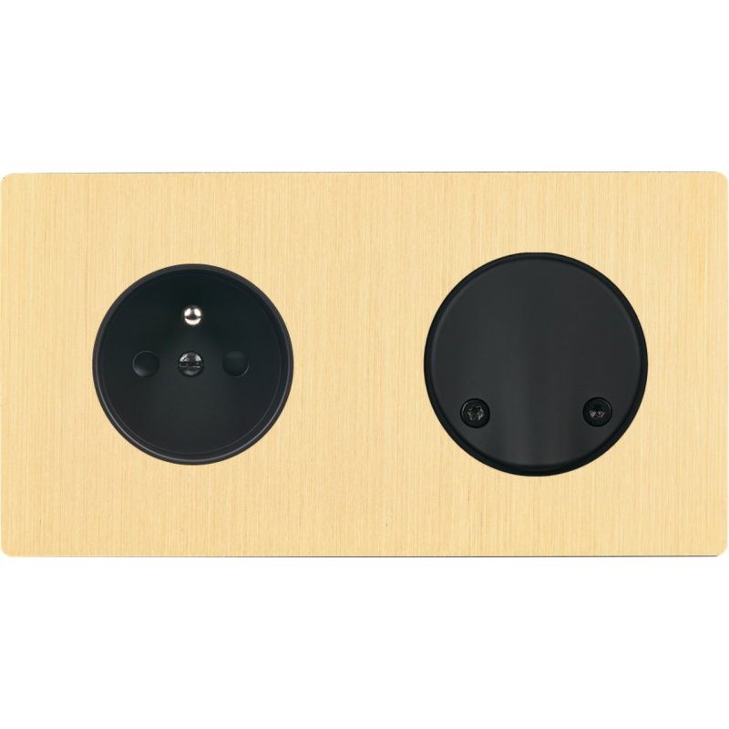 Placa de interrutor 'M' latão escovado duplo horizontal 1 ficha Schuko 1 Media magnético