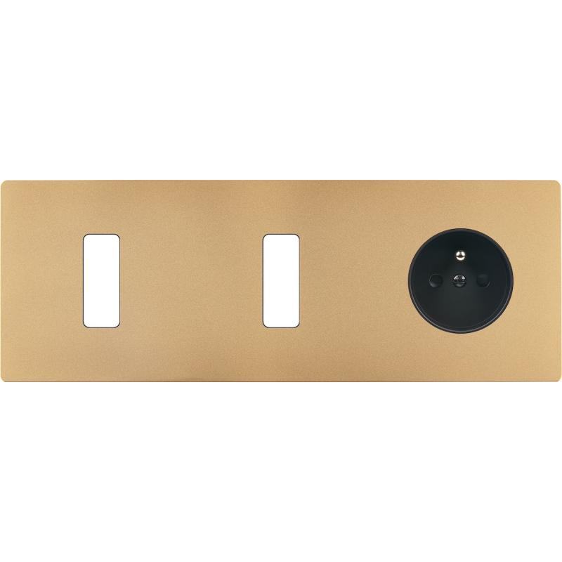 Placa de interrutor 'M' latão areia duplo horizontal 2 botões 1 ficha Schuko magnético