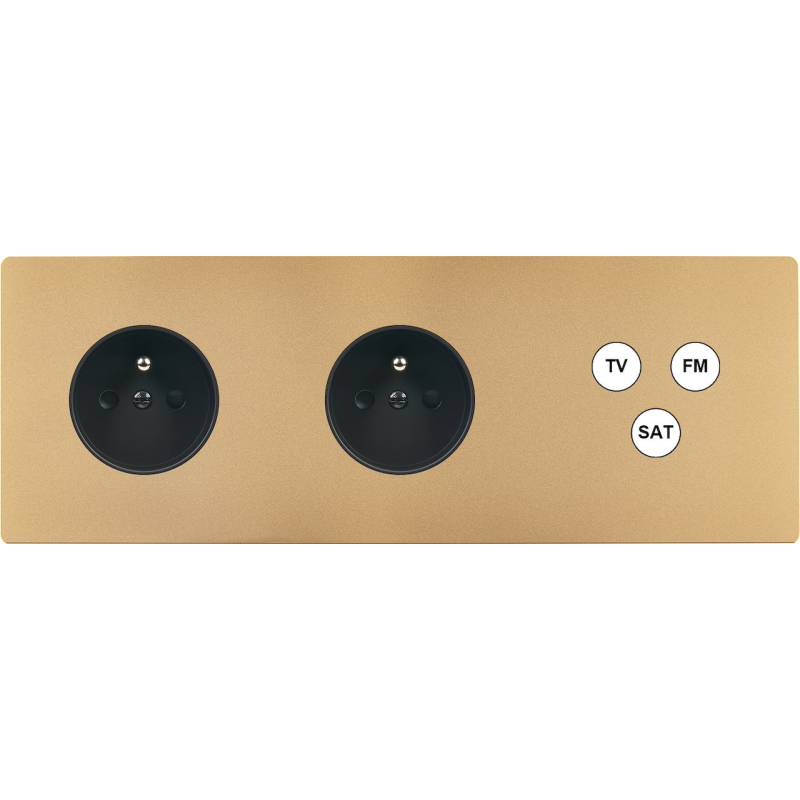 Placa de interrutor 'M' latão areia duplo horizontal 1 ficha TV 1 Media magnético