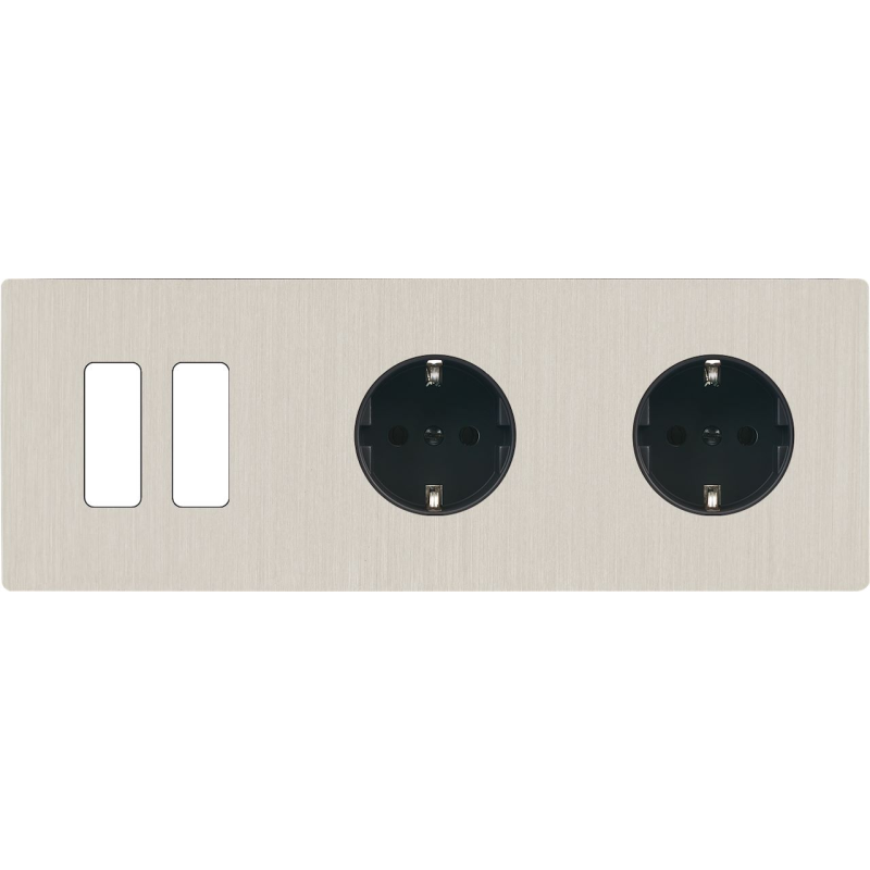 Placa de interrutor 'M' níquel escovado duplo horizontal 1 ficha Schuko SC magnético