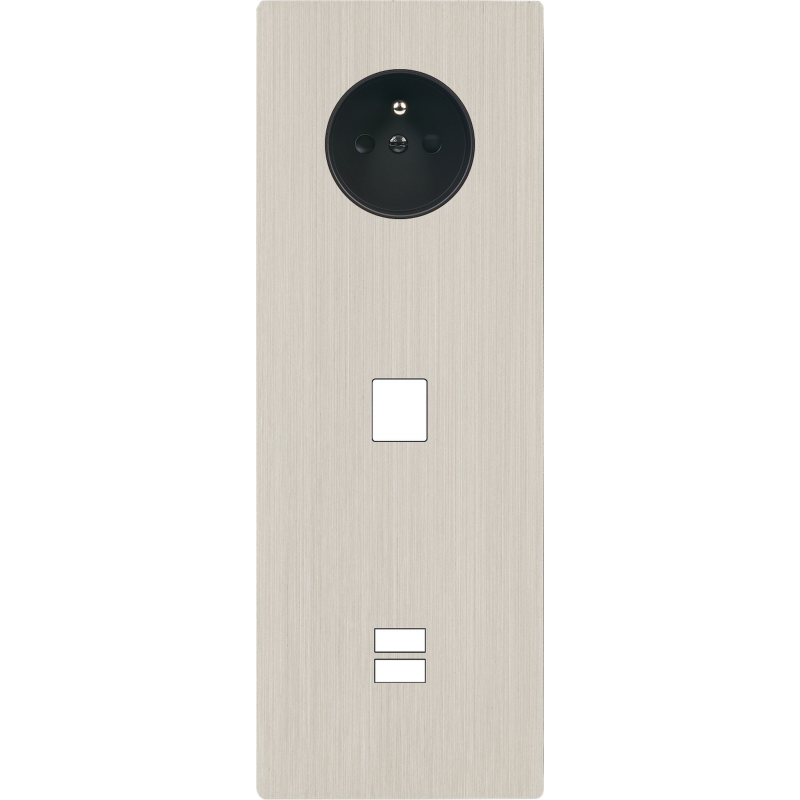 Placa de interrutor 'M' níquel escovado duplo horizontal 1 ficha Schuko 2 Media magnético