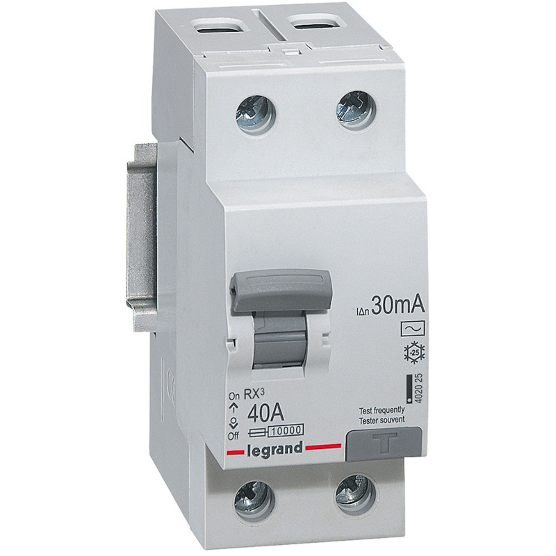 Interruptor diferencial 1P+N - 40A - 30mA - tipo AC - A terminais de desvio