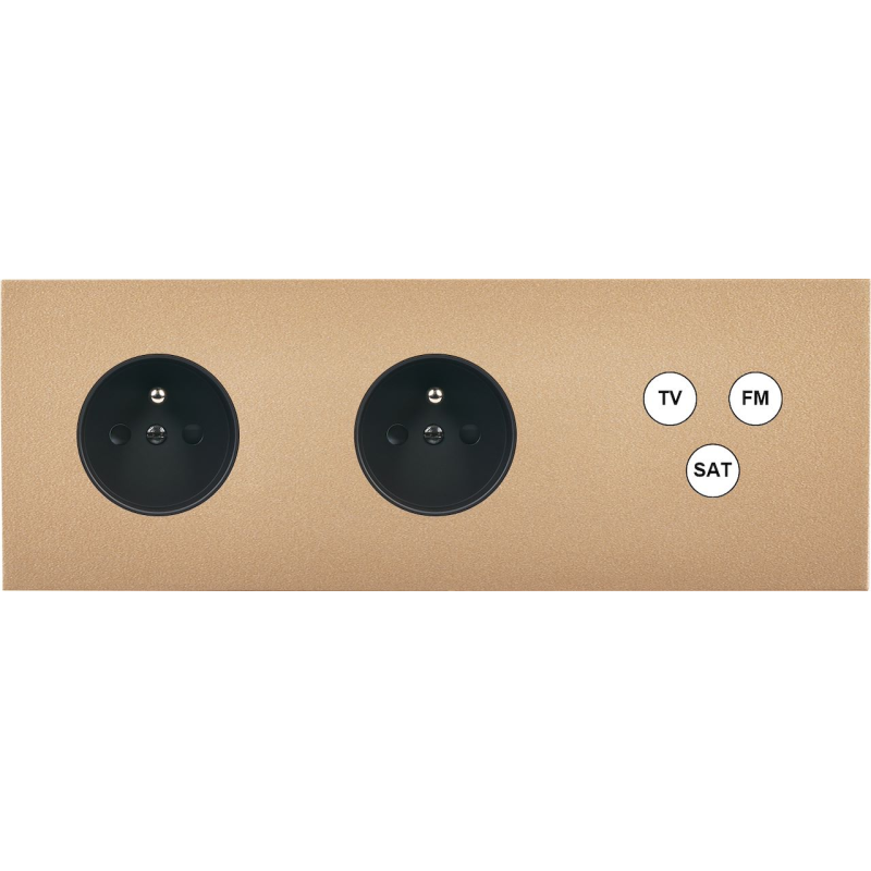 Placa de interrutor Désir dourado mate duplo horizontal 2 medias TV-Fm-Sat