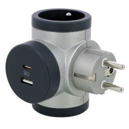 Odace - Cabo de extensão com várias tomadas 5 tampões 2P+T - antracite - 3m