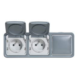 Controlo duplo 3 funções Plexo - 10A - IP55 - completo - incorporado - cinzento